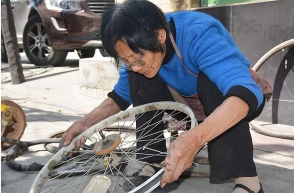 在这时间久了,跟附近的人都混熟了,住户们过来给自行车打气、修补车胎也都认准奶奶这一家,多给的钱也大多不要找零,每个人都力所能及的帮着奶奶。