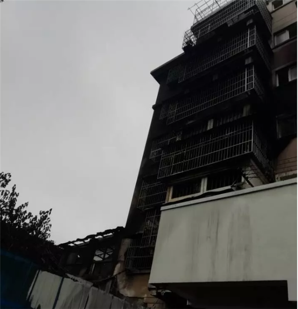 棚内车辆和车棚边南北两侧六层住房遭殃