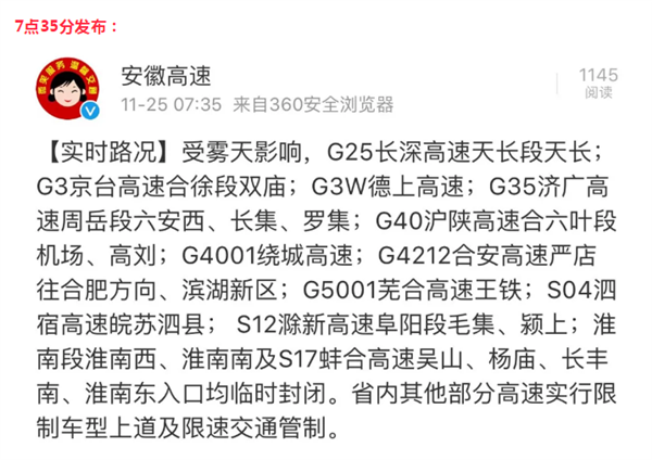 更多最新路况信息,请留意交警、高速部门滚动信息播报。
