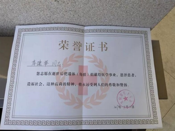在捐献遗体(器官)仪式上,李建举说,他在环卫工作岗位上多年来怀着一颗感恩、回馈社会的心。但是自己文化程度不高,觉得没有什么作为,对社会贡献太少,现在能够成为遗体(器官)捐献自愿者,个人觉得“这是生命的延续,也是爱的传递。”