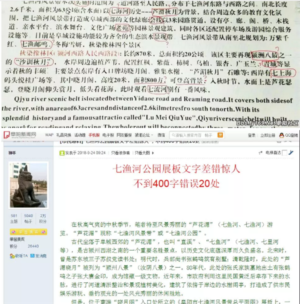9月24日上午,有网友反映,七渔河风景带总平面图标牌出现多处错误。市旅游局值班负责人第一时间关注此事。七渔河风景带的标牌并非市旅游部门负责,但事关大美阜阳形象,市旅游局派人实地查看。第一站到西湖大道与