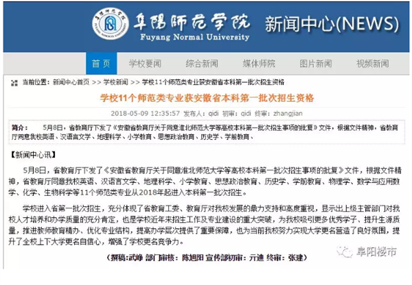 前两天,阜师院在抖音上火了一把,今天,阜师院再次牛逼了,11个专业进入一本招生!荣升一本重点大学!5月8日,省教育厅下发了《安徽省教育厅关于同意淮北师范大学等高校本科第一批次招生事项的批复》文件,根据
