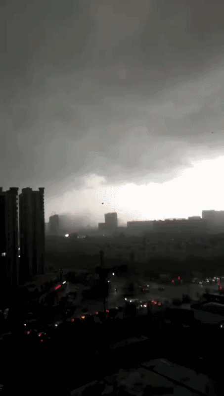 5月16日的冰雹和暴雨席卷阜阳,疯狂程度直至现在还让人心有余悸。↓ ↓ ↓当日在颍泉区伍明镇苏集街头,一棵粗壮树木被大风刮倒,压断道路对面的高压线,挡住了一辆轿车的去路。随后,一男
