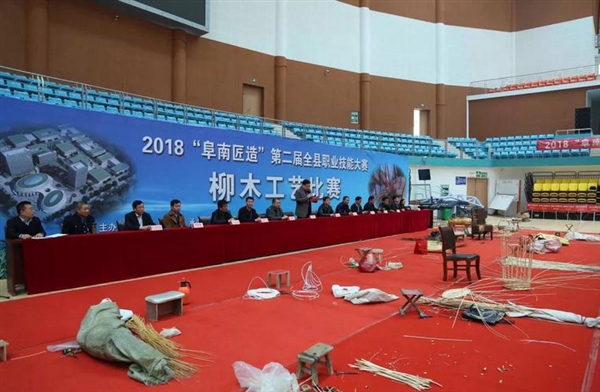4月14日上午,由阜南县政府主办,黄岗镇政府和轻工柳木协会承办,县商务局、曹集镇政府、中岗镇政府、郜台乡政府联合协办的2018”阜南匠造”第二届职业技能大赛柳木工艺比赛在县体育馆举行。 来自